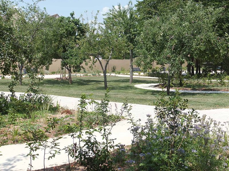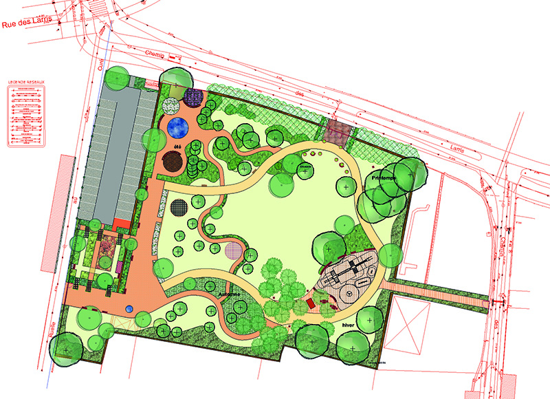 La composition du parc s’articule autour de ce patrimoine arboré préservé et le long des allées serpentines propices à la promenade se déroulent des ambiances végétales multiples basées sur l’alternance ombre et soleil. Chacune des saisons se voit largement réprésentée avec des zones dédiées et des compositions végétales emblématiques.