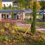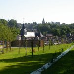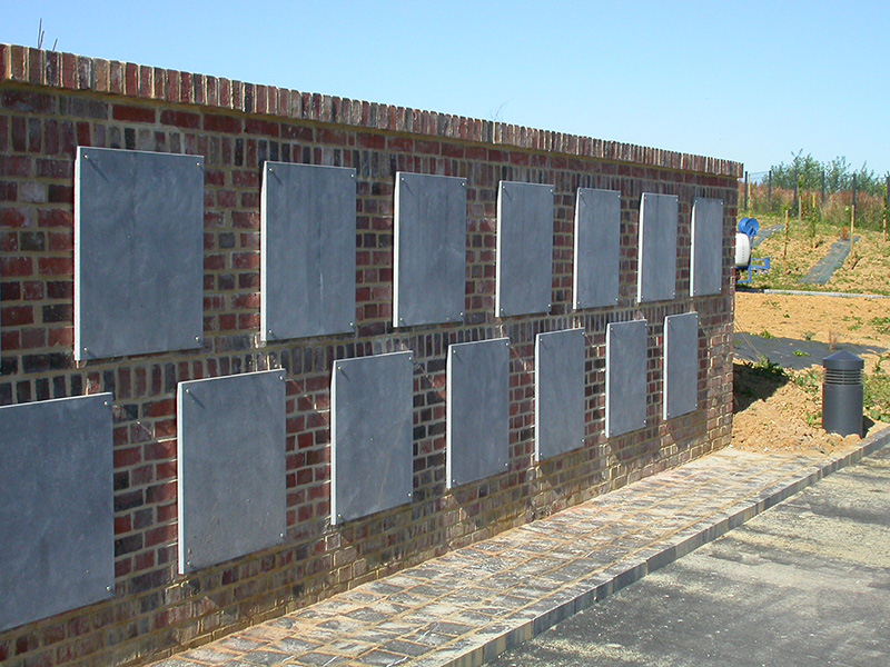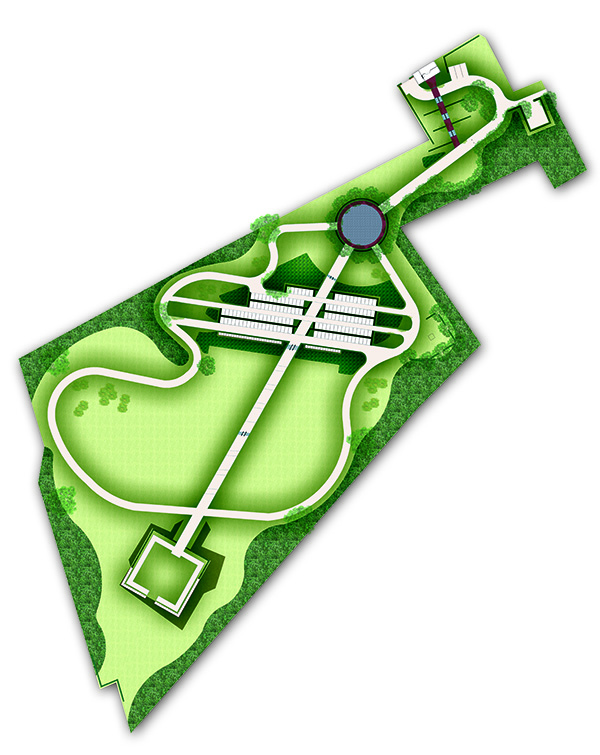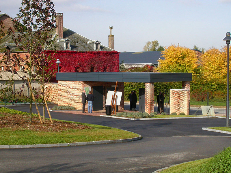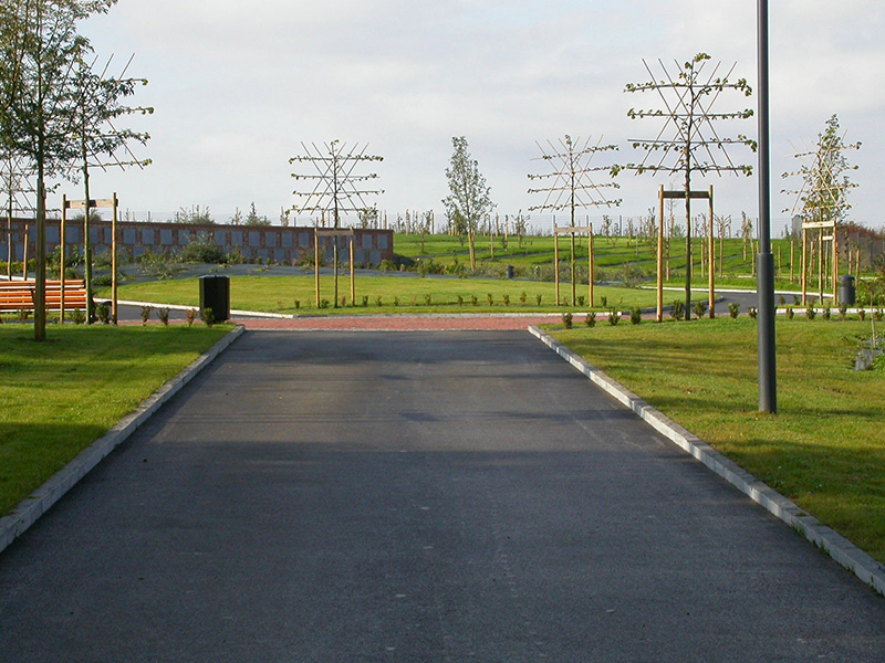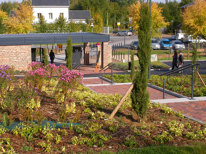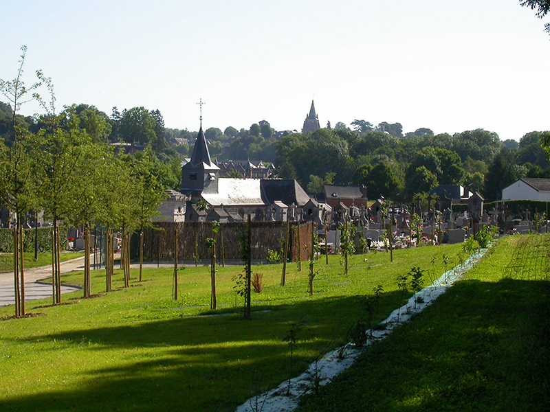 Le cimetière actuel arrivant à ses limites de capacité, la commune de Vervins a envisagé son extension sous forme de cimetière paysager dans une grande prairie en pente, face à la gare. La composition du nouveau cimetière s’appuie sur un grand axe diagonal tendu entre deux placettes (placette commémorative d’un côté et jardin du souvenir de l’autre) d’où sont issues des voies périphériques. Cet axe est réservé aux piétons ; les corbillards emprunteront des voies périphériques et sinueuses organisées de part et d’autre de l’axe ainsi que des voies parallèles à la pente les reliant entre elles. La pente du terrain est mise à profit pour construire des murs de soutènement faisant office de columbariums. Un soin particulier est accordé à l’entrée avec la création d’un auvent et en clôture des murs aux matériaux nobles (briques et pierre bleue) et des grilles ouvragées.
